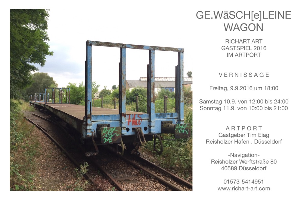RICHART ART MEIN GASTSPIEL 2016 GE.WÄSCH[E].LEINEN WAGON A R T P O R T Gastgeber Tim Eiag Reisholzer Hafen . Düsseldorf 9.9-11.9.2016 DER FILM DOKUMENTIERTES ENTSTEHEN ENTWÜRFE . SKIZZEN . MODELLE